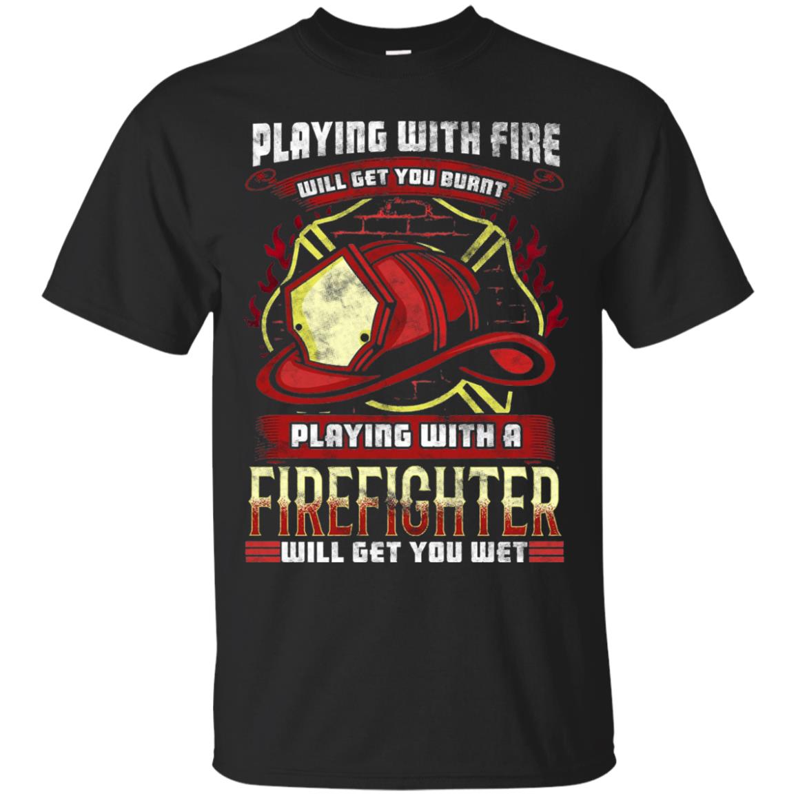 Playing With A Firefighter Will Get You Wet Funny Firefighter T-Shirt